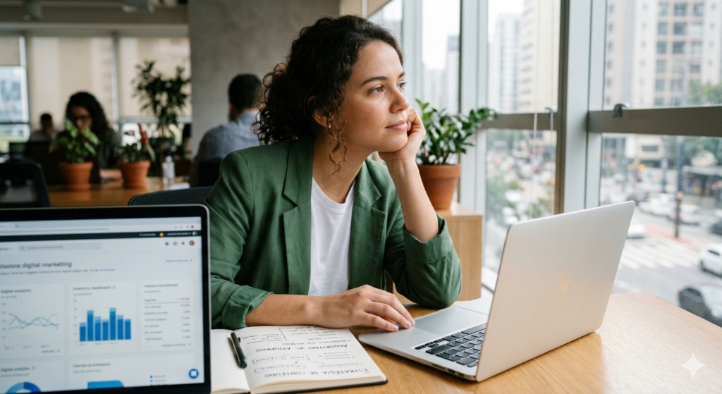 Além disso, o diagnóstico orienta como evoluir sua estratégia para reduzir riscos, fortalecer autoridade e construir um sistema de geração de demanda mais previsível, baseado não apenas em alcance, mas em relacionamento e relevância.