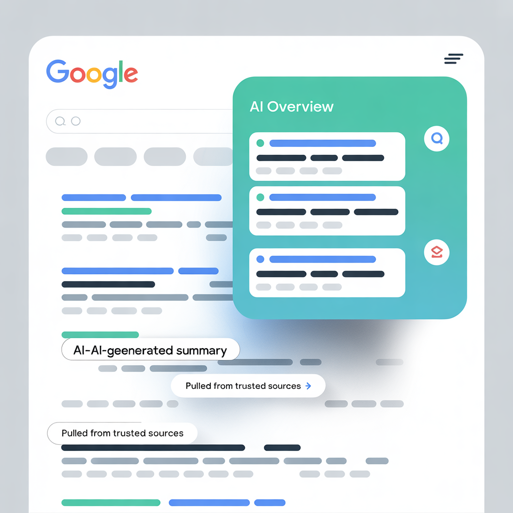 O que antes era uma lista de links hierarquizados por relevância algorítmica agora passa a incluir respostas sintetizadas por IA, com referências distribuídas de maneira diferente do padrão clássico de SERP (Search Engine Results Page).