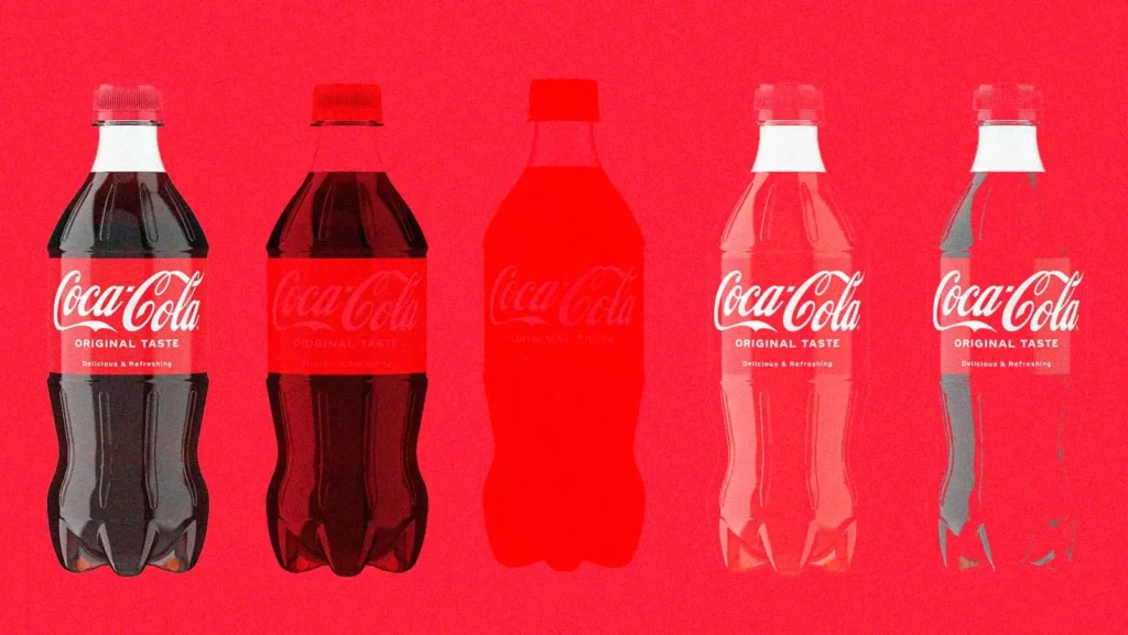 A Coca-Cola construiu um dos maiores ativos de reconhecimento do mundo a partir da consistência de embalagem. Cor, tipografia e formato são tão fortes que o produto é identificável mesmo sem logotipo.